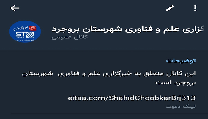 از شهروندان ، اهالی رسانه و نخبگان عزیز شهرستان بروجرد میخواهیم با عضویت در این کانال ، به گسترش رسانه علمی شهرستان کمک کنند.